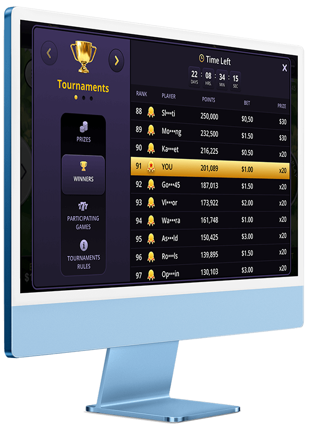 Reward players for their actual gameplay and prize Contribution. Set up prizes and schedules that match your players gaming style